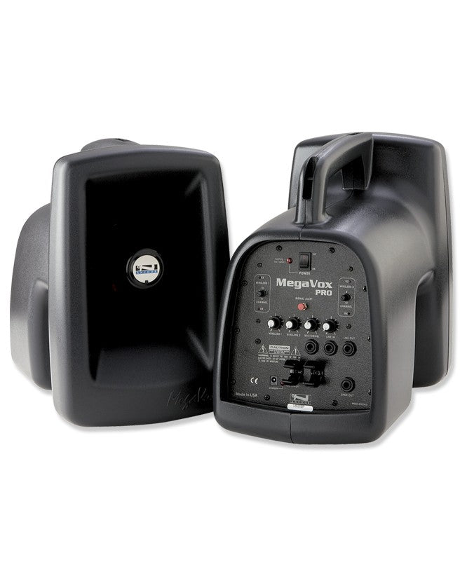 Mega Vox Pro 2 System Includes: Two body pack transmitter, two headset or lapel mic, AC charger, dynamic wireless mic, FREE heavy-duty speaker stand